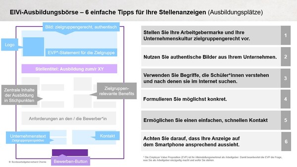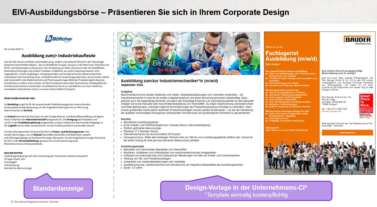 Eine Teilnahme an der ElVi-Ausbildungsbörse ist ausschließlich für Mitgliedsunternehmen der Chemie-Arbeitgeberverbände möglich.